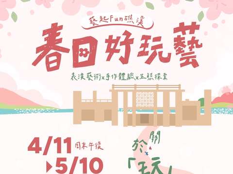 宜蘭縣政府文化局將於4月11日至5月10日,每週六、日下午於礁溪跑馬古道公園(北園區)舉辦【藝起Fun礁溪-春日好玩藝】系列活動。活動融合表演藝術、手作體驗與戶外探索,邀請民眾走進自然場域,透過「玩」這件小事,開啟創意與歡樂的藝文體驗旅程。